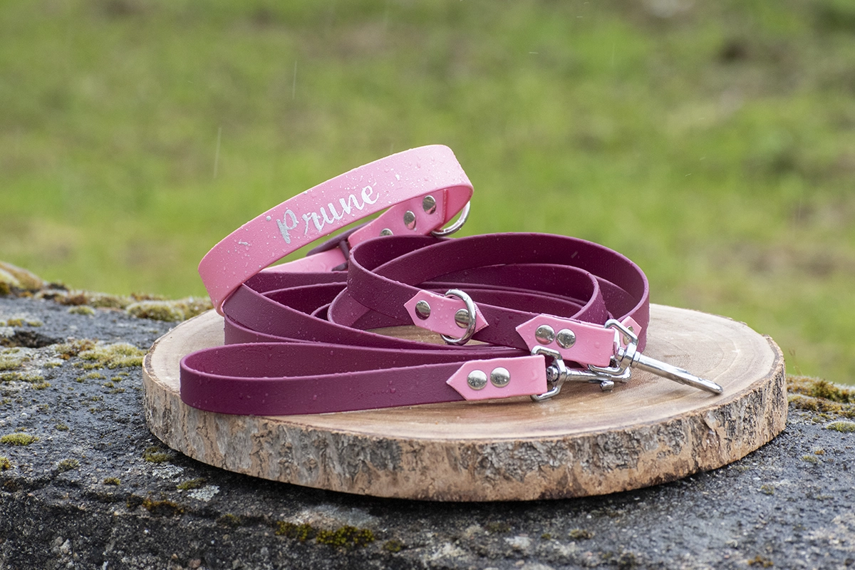 L’avantage du biothane est que c’est une matière facile d’entretien, idéale pour nos chiens qui ont l’art de courir dans la boue et de se rouler dans toutes sortes de choses. Un coup d’éponge et ton collier est propre!