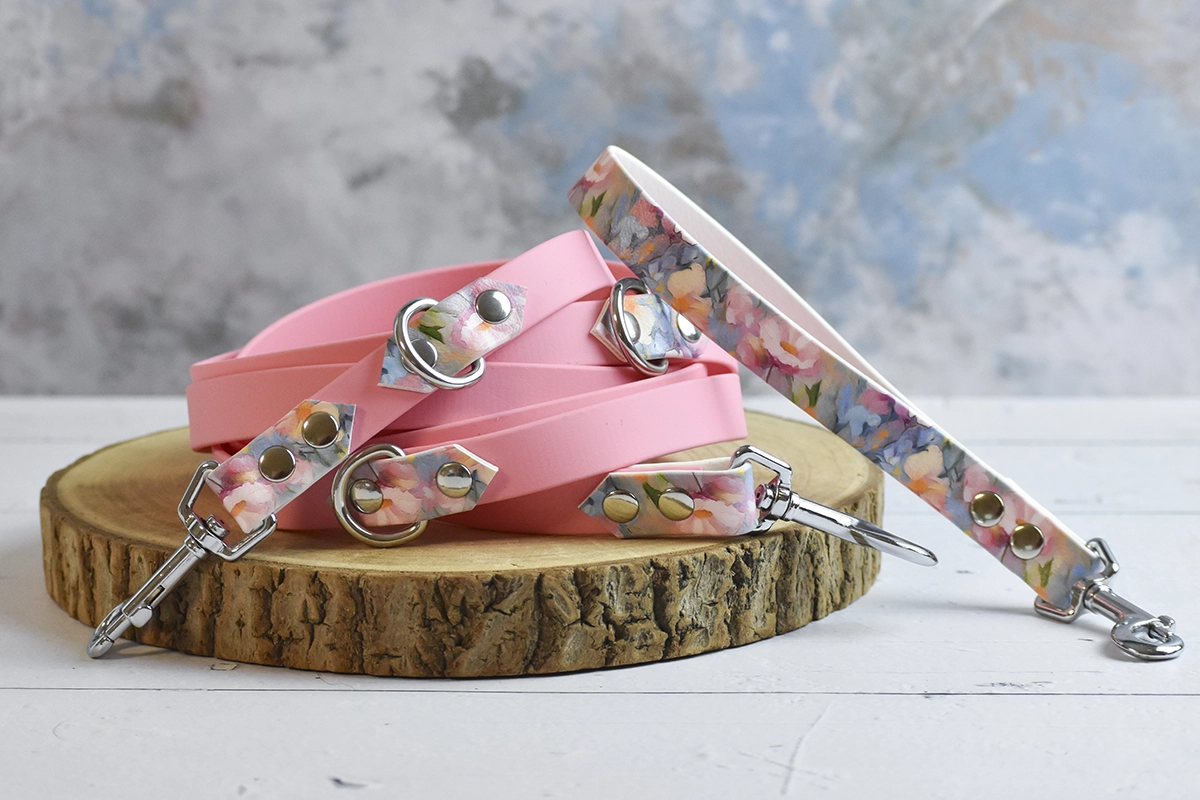Laisse 3 points en biothane 19mm et sa poignée de harnais assortie en biothane imprimé