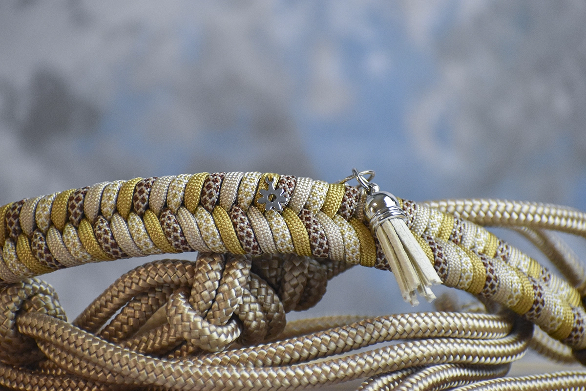 Conçus en corde polypropylène d’une épaisseur de 6 mm, mes licols éthologiques sont légers et agréables à porter pour les chevaux. Le tressage de la muserolle est fait avec des cordes légèrement plus épaisses que celles généralement utilisées pour les licols en corde. Elles permettent d’ajouter du confort sur le chanfrein du cheval grâce à leur côté moelleux sans gêner l’action des noeuds du licol.
