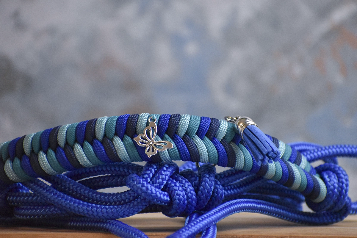 Conçus en corde polypropylène d’une épaisseur de 6 mm, mes licols éthologiques sont légers et agréables à porter pour les chevaux. Le tressage de la muserolle est fait avec des cordes légèrement plus épaisses que celles généralement utilisées pour les licols en corde. Elles permettent d’ajouter du confort sur le chanfrein du cheval grâce à leur côté moelleux sans gêner l’action des noeuds du licol.
