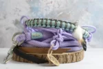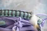 Tu peux choisir une couleur classique et une couleur à paillettes pour ce tressage, ainsi que l’emplacement de la corde à paillettes, vers le haut ou vers le bas.