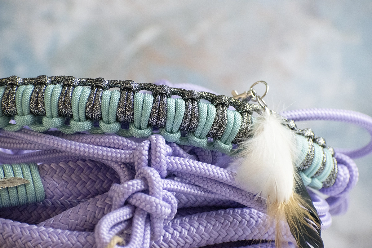 La corde en polypropylène est légère, résistante à l’humidité et facile d’entretien. Elle ne moisit pas, sèche rapidement et conserve ses couleurs dans le temps. Son diamètre de 6 mm offre un excellent équilibre entre finesse et précision. L’ajout d’un tressage sur la muserolle apportera également du confort à ton cheval en ajouter du moelleux et une répartition plus large des pressions sur le chanfrein de ton cheval.