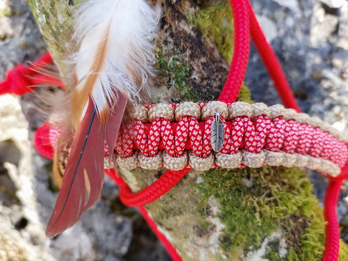 Nos licols éthologiques sont conçus avec de la corde de 6 mm en polypropylène, un matériau léger et souple. Tu peux choisir la couleur de cette corde ainsi que différents coloris pour le tressage de la muserolle afin de créer un licol éthologique personnalisé. Le nœud de sous-gorge offre une bonne symétrie, tout comme le nœud diamant. Ce dernier peut se dérégler et il est parfois délicat à resserrer pour les cavaliers débutants. Lors de la confection de ton licol, je peux stabiliser ce nœud fiador. Il te suffit de me le demander dans la case « Remarque », lorsque tu passes ta commande !