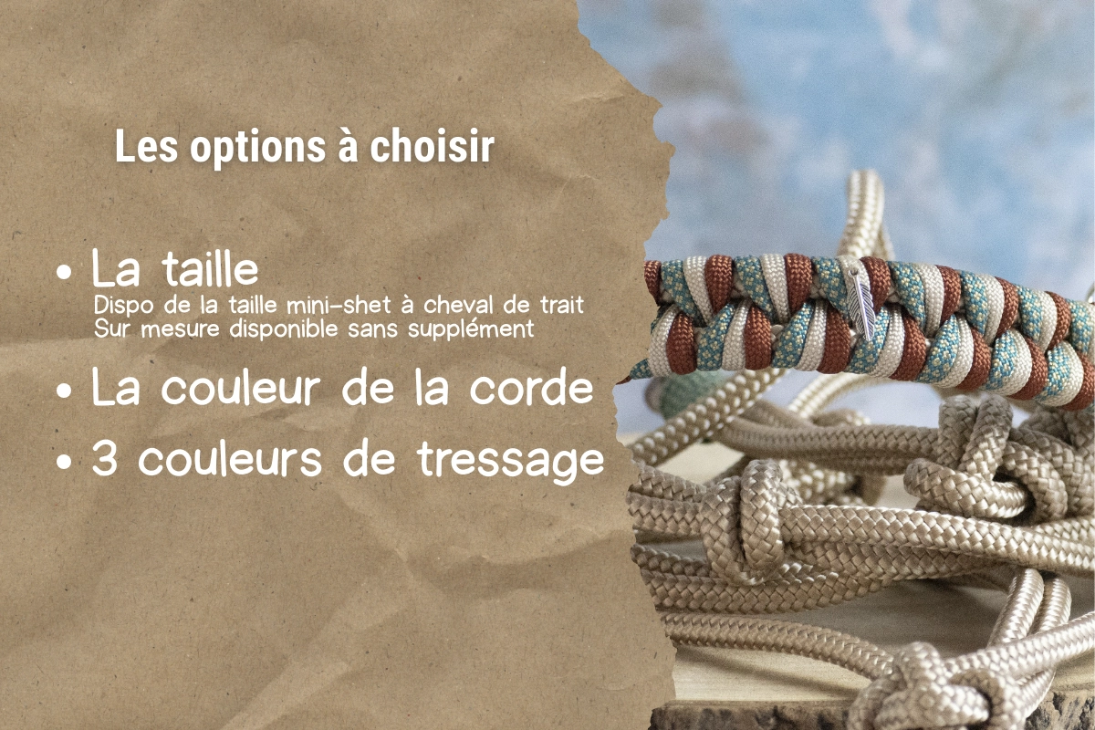 Conçus en corde polypropylène d’une épaisseur de 6 mm, nos licols éthologiques sont légers et agréables à porter pour les chevaux. Ils sont entièrement personnalisables: tu peux non seulement choisir la couleur de la corde, le tressage ainsi que les couleurs du tressage. Pour le tressage de muserolle Sugarfoot, tu peux choisir jusqu’à 3 couleurs parmi les 40 proposées.